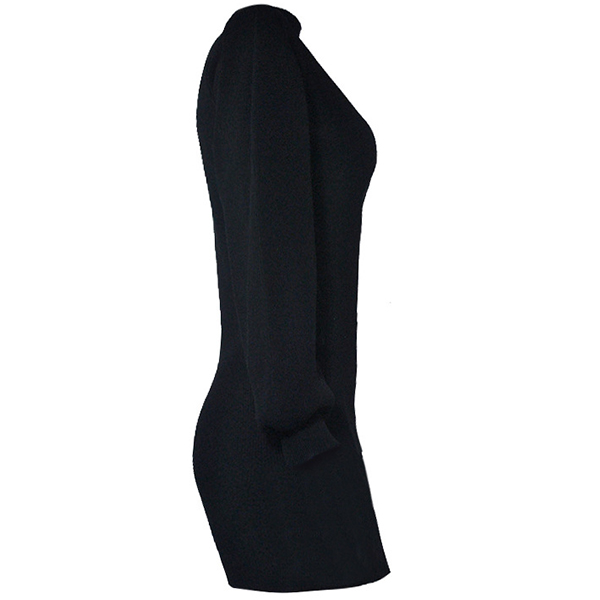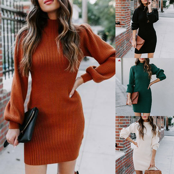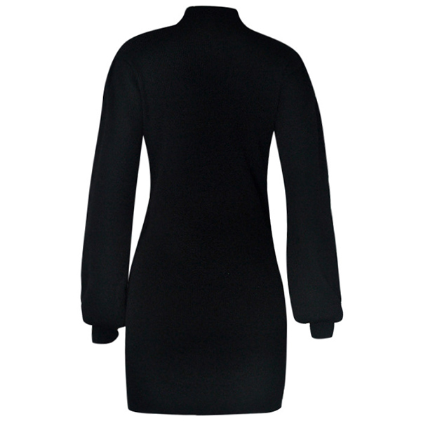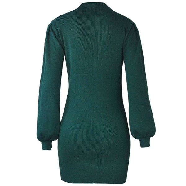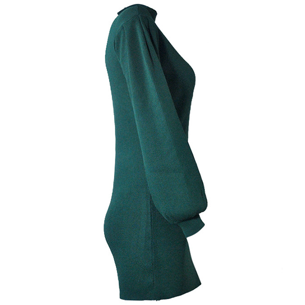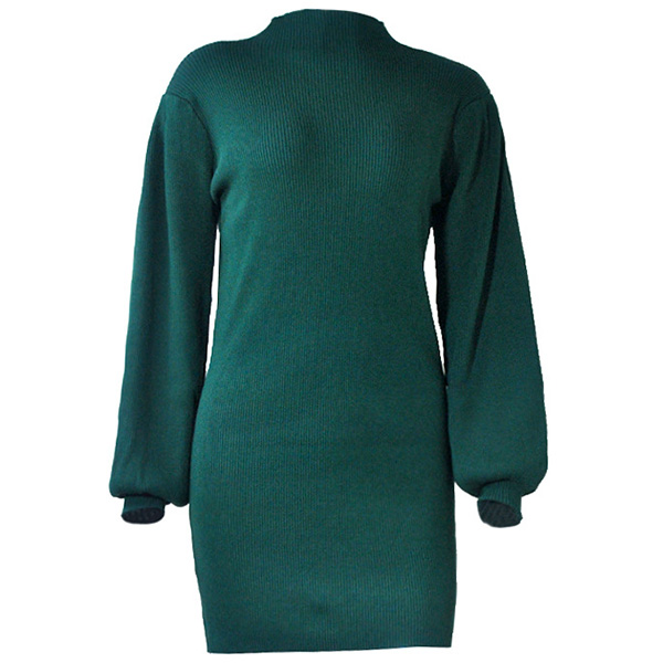 Fashion Solid Color Lantern Sleeve Mock Neck SLim Fit Knit Dress