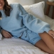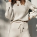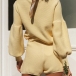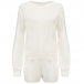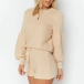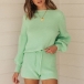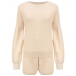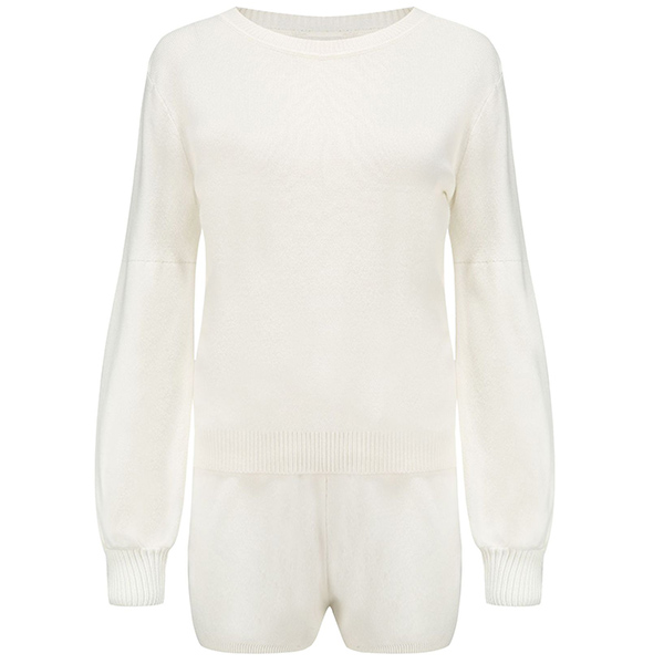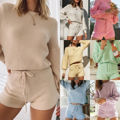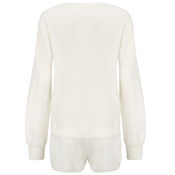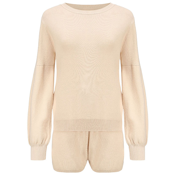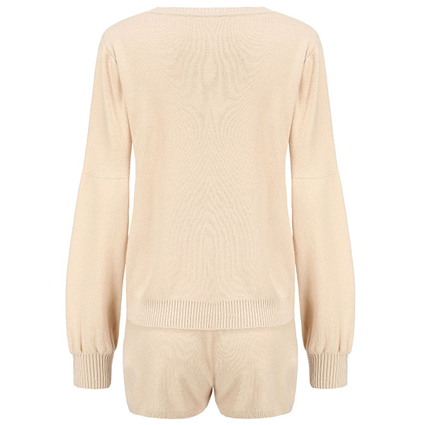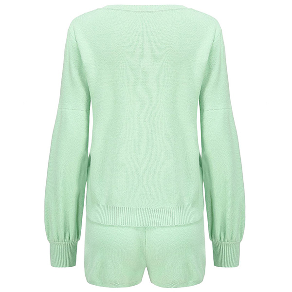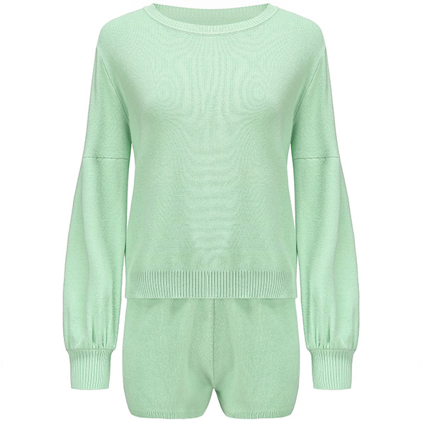 Fashion Solid Color Lantern Sleeve Round Neck Knit Top + Shorts Two-piece Set
