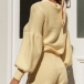 When you wanna update your daily style,you can just have a try this two-piece set! Solid color tone design makes it look simple yet generous. The unique lantern sleeve design makes it look more attractive. Like them? Then buy one set!