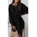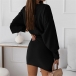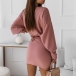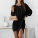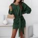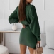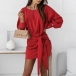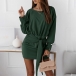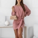 Fashion Solid Color Lantern Sleeve Round Neck Lace-up Dress