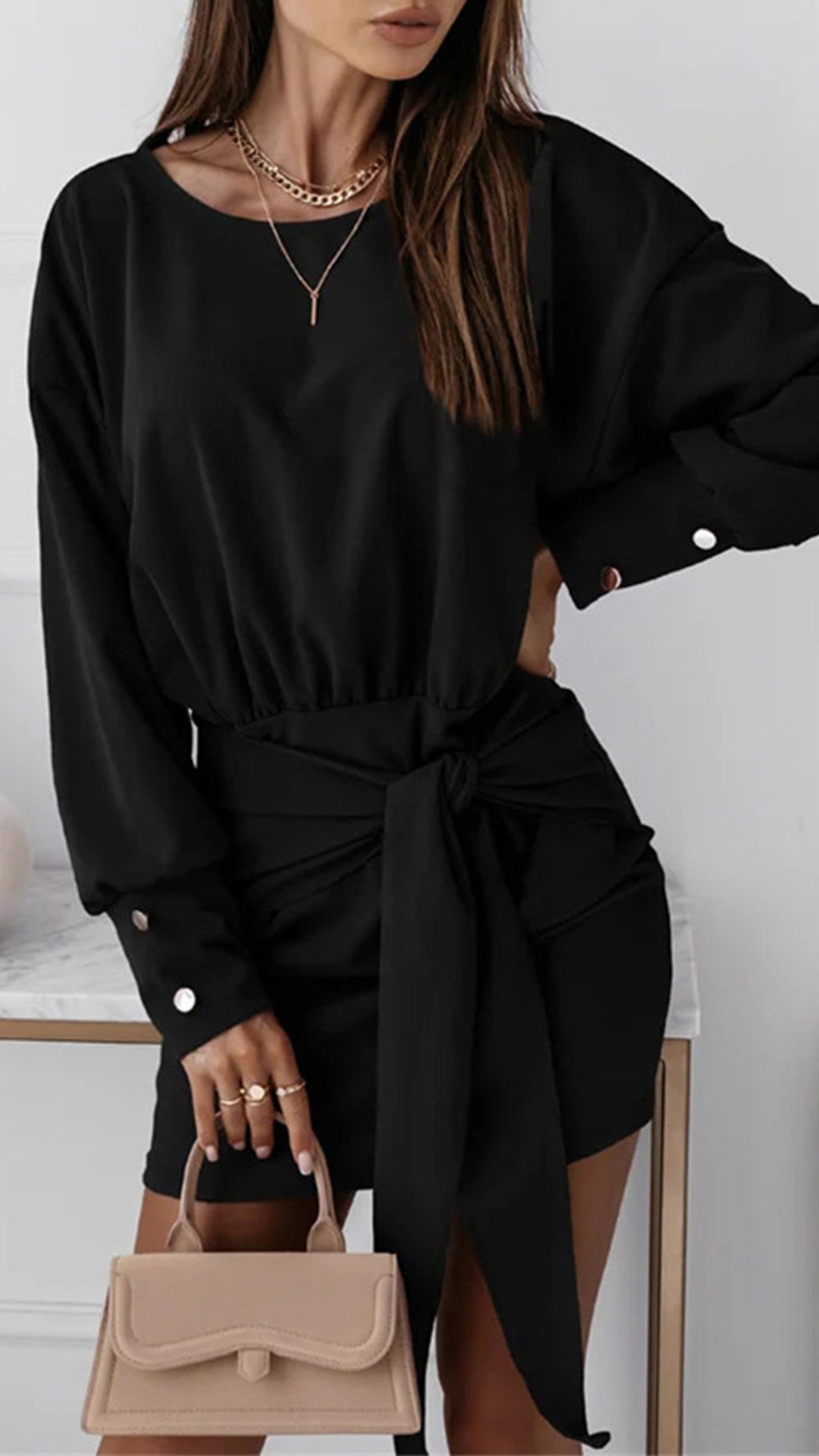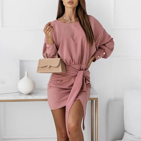 Modestly stylish,while still maintaining its feminine appeal, that's why we love this dress! Crafted in a solid color,the lantern sleeve design will make it look more attractive. Moreover,the fit silhouette and lace-up design at the waist part can better showcase your slender figure. You can match with a sparkle necklace if you wanna look more beautiful.