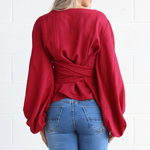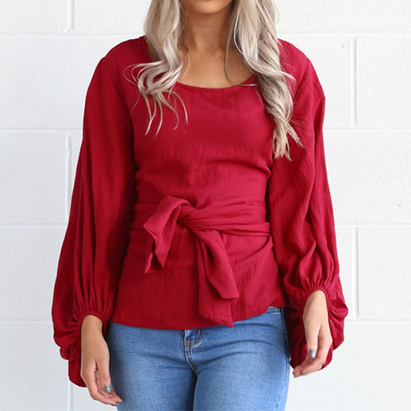 Solid color style,crafted from soft and breathable fabric,with lantern sleeve and round neck design,this top can keep