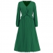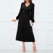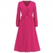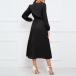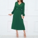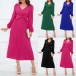 Fashion Solid Color Lantern Sleeve Ruched Pleated Midi Dress