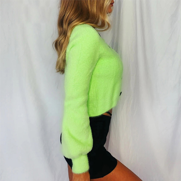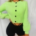 Fashion Solid Color Lantern Sleeve Single-breasted Cardigan