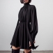 Only need one glance,you would be attracted by this chic and stylish chiffon dress. Its soft,smooth and cozy chiffon fabric can give you a comfortable day. The lantern sleeve,mock neck and lace-up design at the collar part will make this piece look more attractive. From your daytime out to night dating,this dress can be your wise choice.