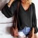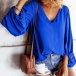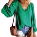 Boasts a solid color,the lantern sleeve and v-neck design make this piece look more attractive and distinctive.