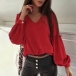 Fashion Solid Color Lantern Sleeve V-neck Loose Top