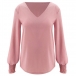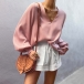 Fashion Solid Color Lantern Sleeve V-neck Loose Top