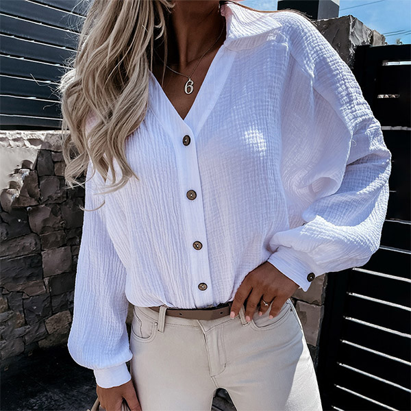 Compared with your other shirts,this piece can bring you more style. It comes with a solid color,the lantern sleeve and v-neck design make this piece look more attractive. Meanwhile,its soft and breathable fabric can ensure you a comfortable day. You can match it with your favourite pants to start your wonderful day.