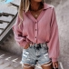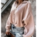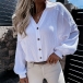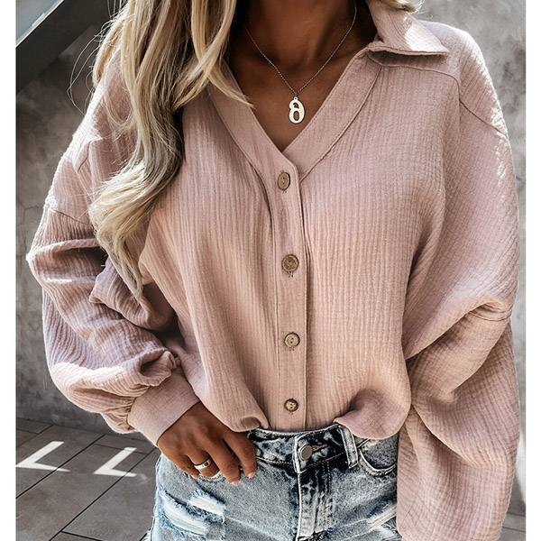 Fashion Solid Color Lantern Sleeve V-neck Single-breasted Shirt