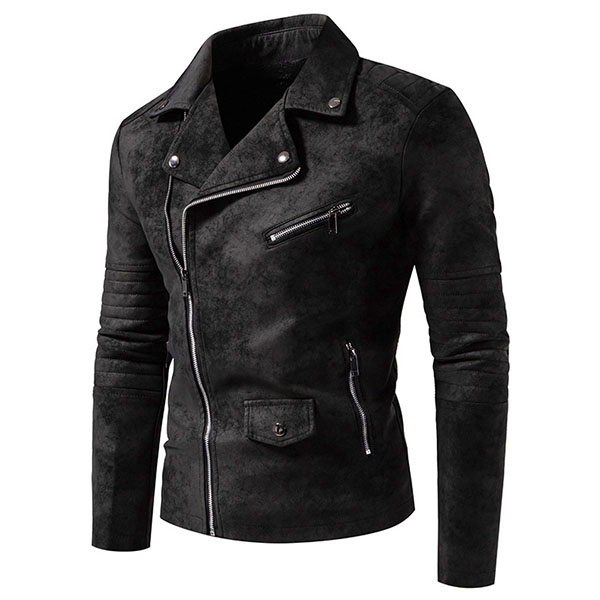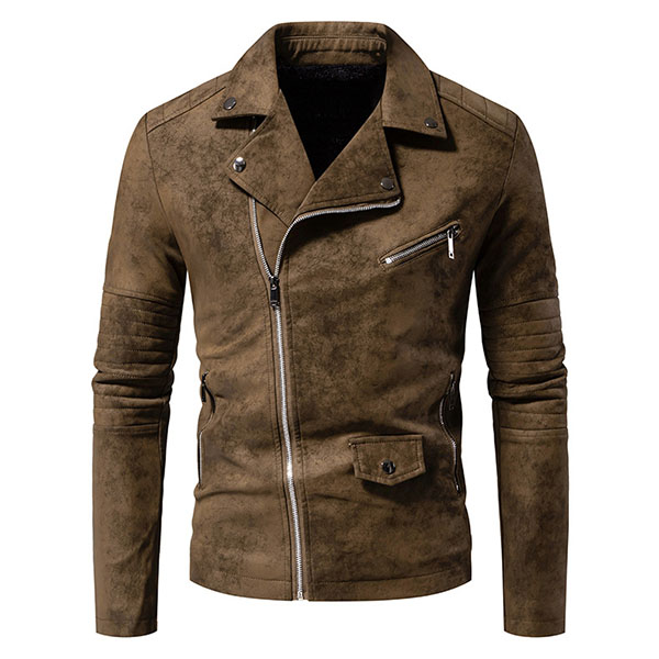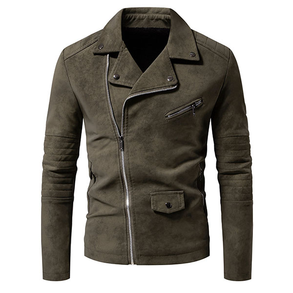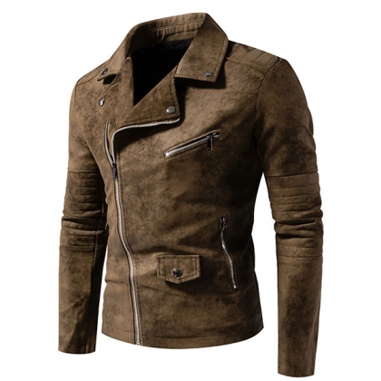 Fashion Solid Color Lapel Long Sleeve Oblique Zipper Men's Jacket