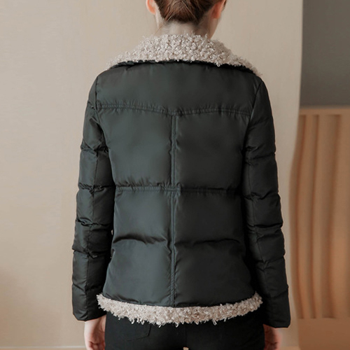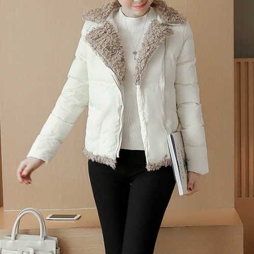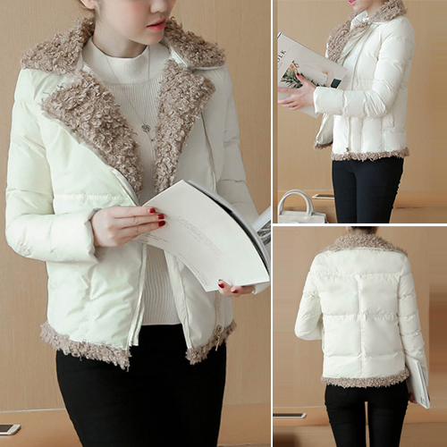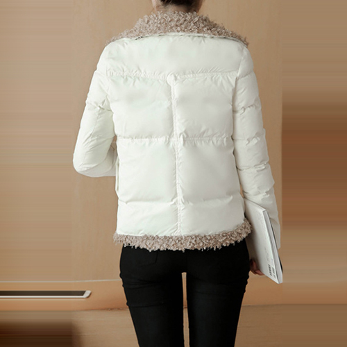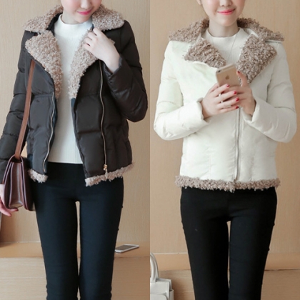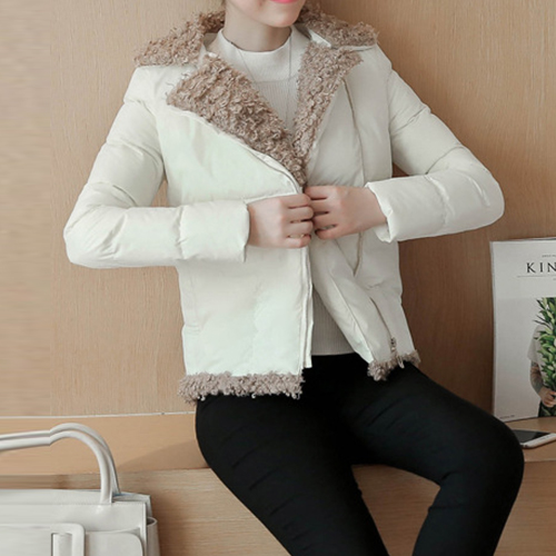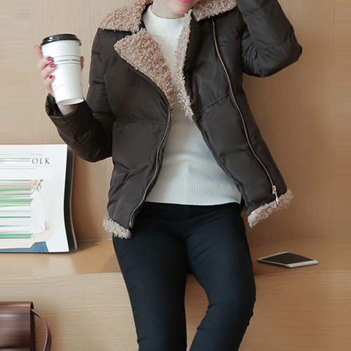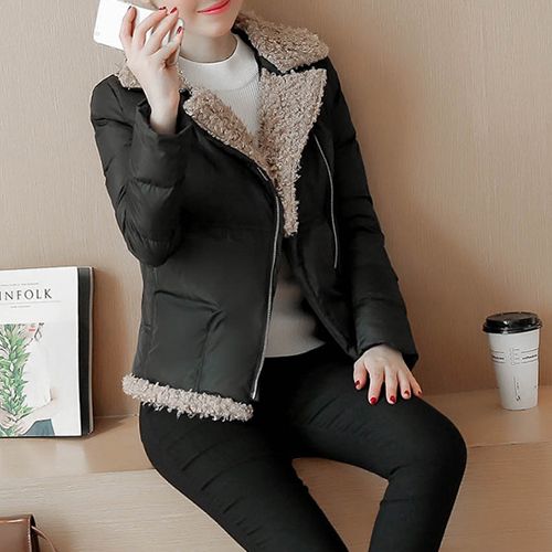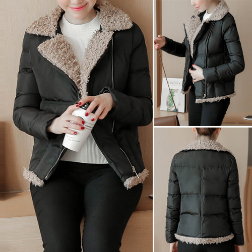 oblique zipper design, complemented with soft artificial fur material, fashion and sweet. A winter essential.