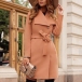 Fashion Solid Color Lapel Long Sleeve Self-tie Duffle Coat