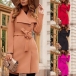 This coat features a lapel collar and long sleeves, creating a classic and sophisticated look. The self-tie waist belt allows you to cinch the coat for a defined and flattering silhouette. The solid color adds a minimalist and timeless appeal, making it easy to style with different outfits. Whether worn for work or leisure, this coat is a fashionable and practical addition to your wardrobe.