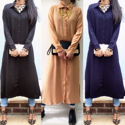 Just enjoy a stylish and casual style in this blouse dress. Solid color design with lapel, long sleeve