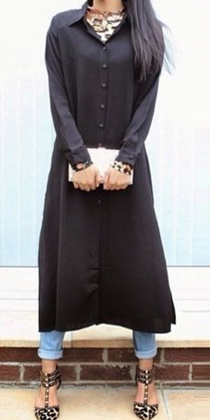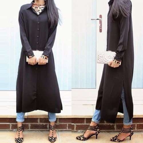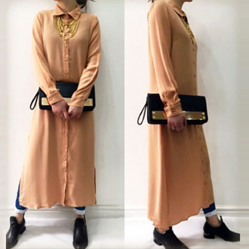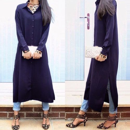 and single-breasted, this dress is a best selection for your friends' gathering. Its slit hem design
