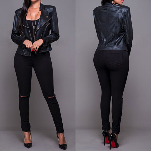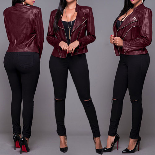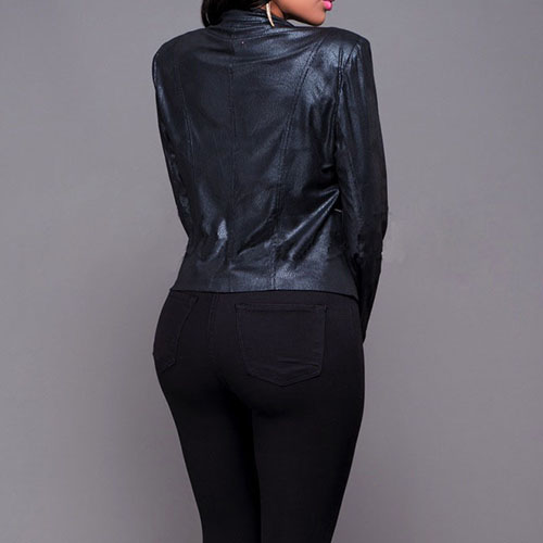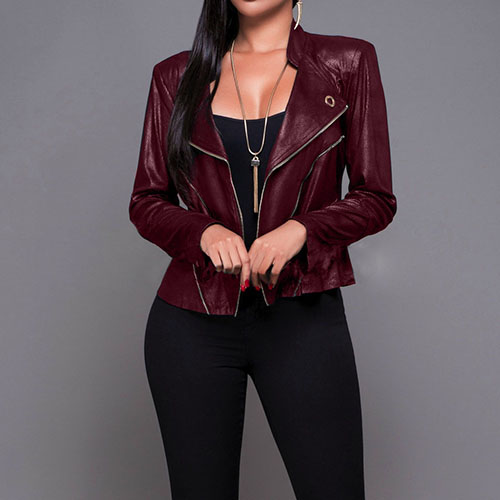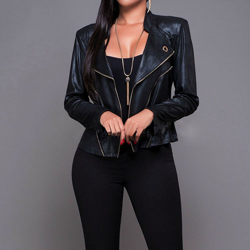 To better show off your modern feminine style, this jacket is designed with lapel, long sleeve, front zipper and slim fit silhouette.