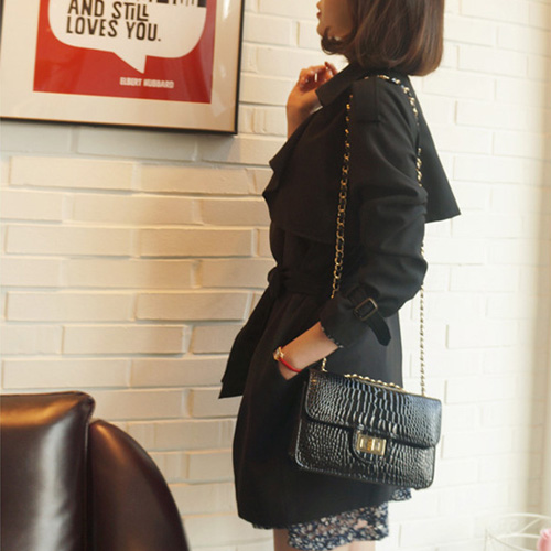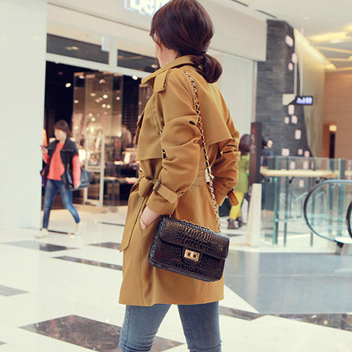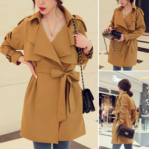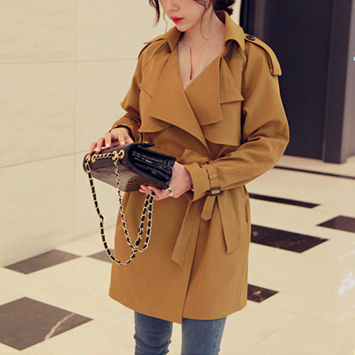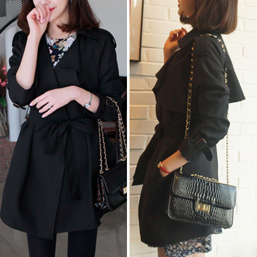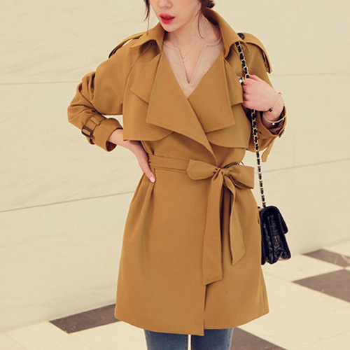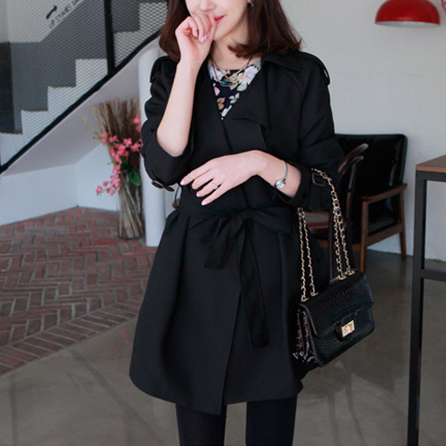 This trench coat is a made-to-be elegant coat. Its pure color looks dignified.