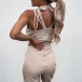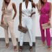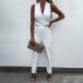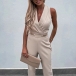 Fashion Solid Color Lapel V-neck Backless Cross-criss Jumpsuit