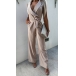 How about this jumpsuit? It features a solid color design with a lapel V-neckline and self-tie detailing that adds a touch of elegance to your look. The wide-leg design and comfortable fit make it perfect for a summer day out or a night on the town.