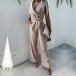 Fashion Solid Color Lapel V-neck Self-tie Wide-leg Jumpsuit