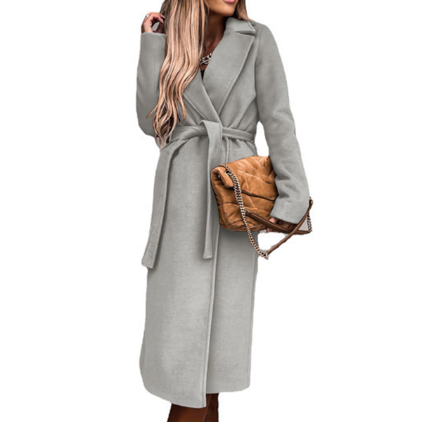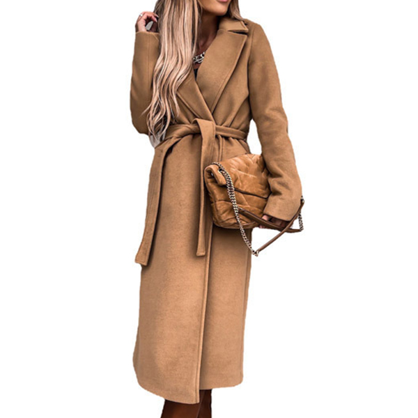 Fashion Solid Color Lapel Waist Strap Trench Coat
