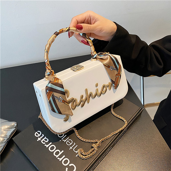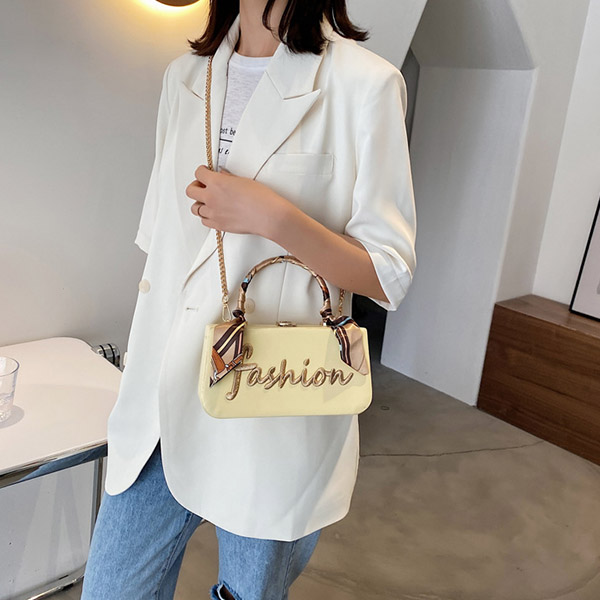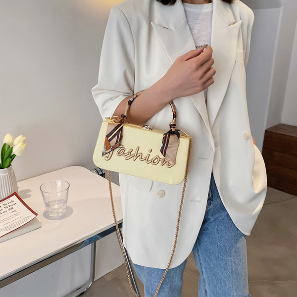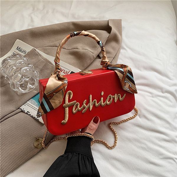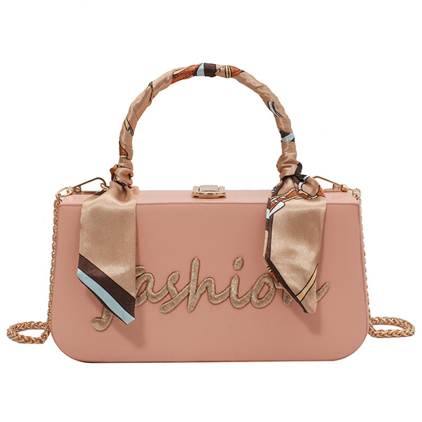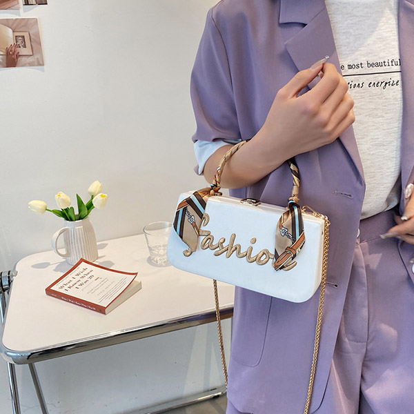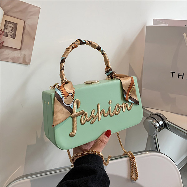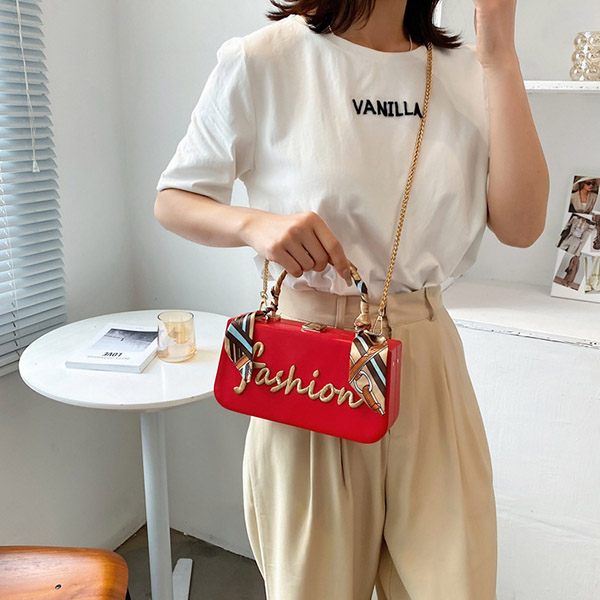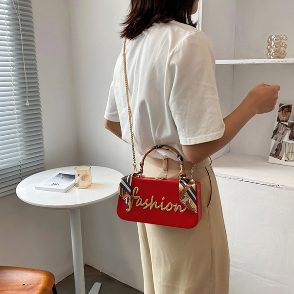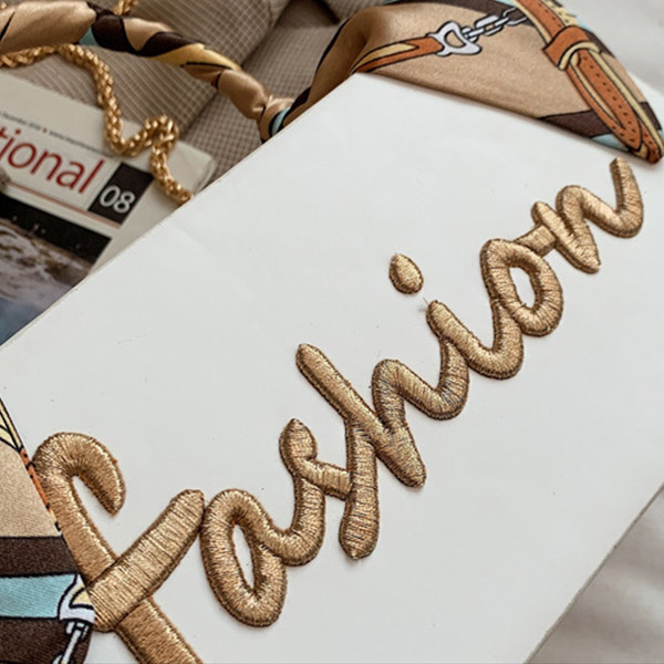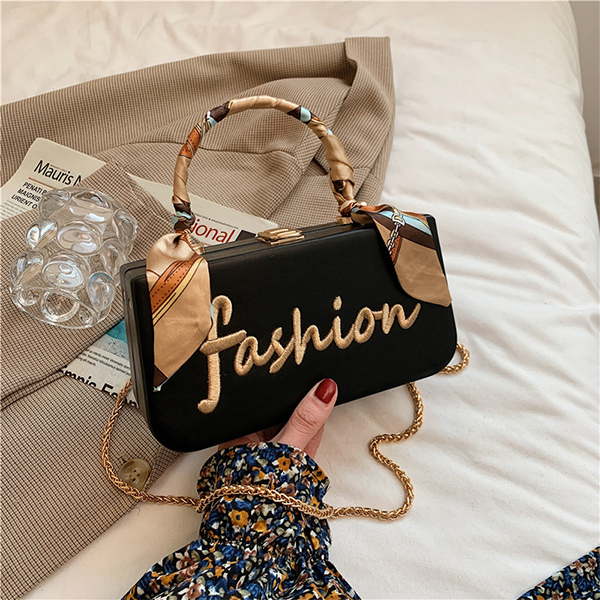 Fashion Solid Color Letters "Fashion" Embroidered PU Leather Handbag