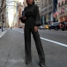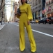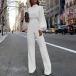 Jumpsuit in woven fabric. Solid color, stand collar, long batwing-sleeve and narrow cuffs, wide flared leg. This jumpsuit could be a wonderful basic daily wear.