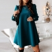 Fashion Solid Color Long Sleeve Back-button A-line Dress