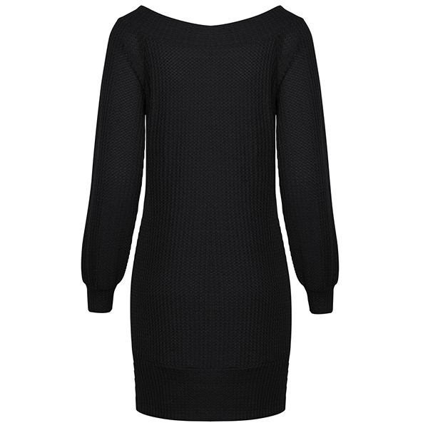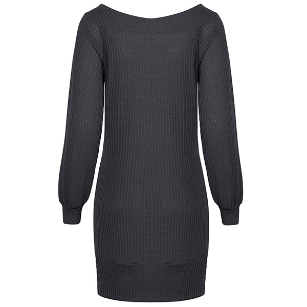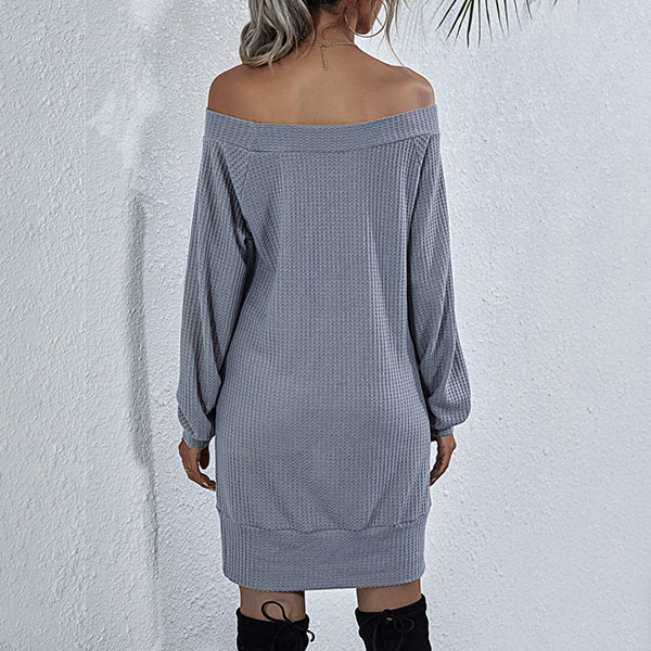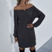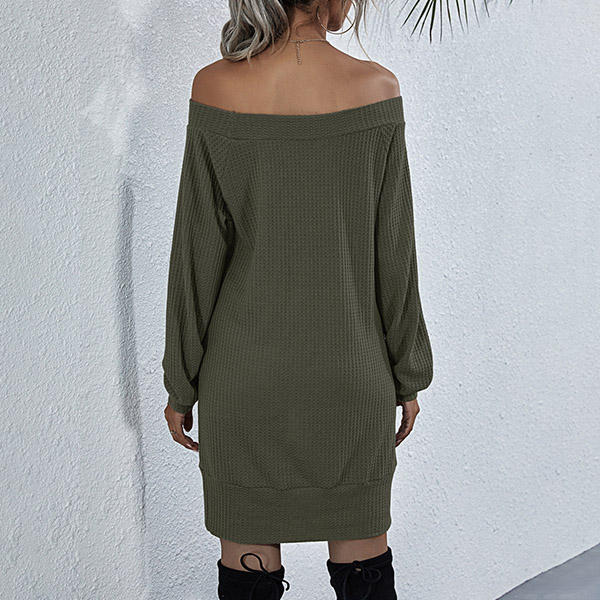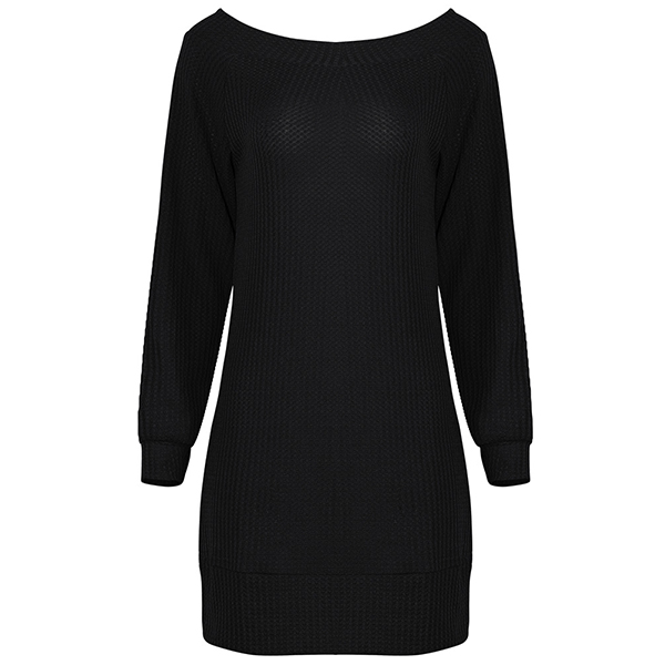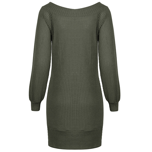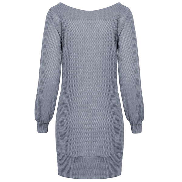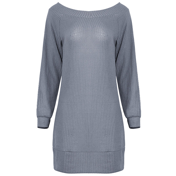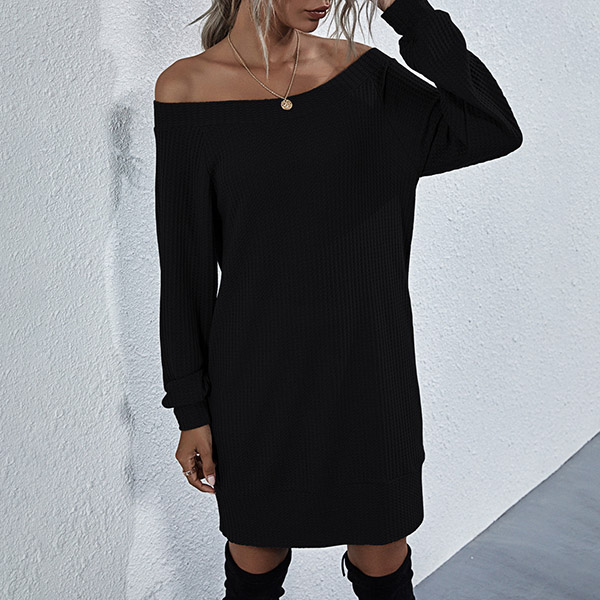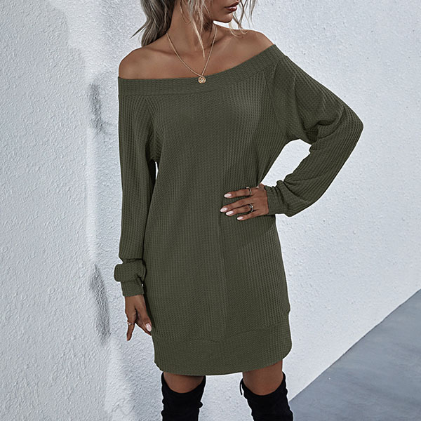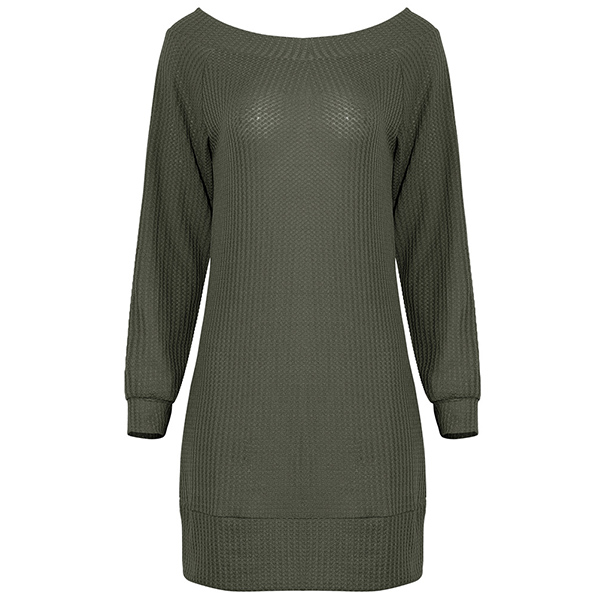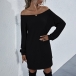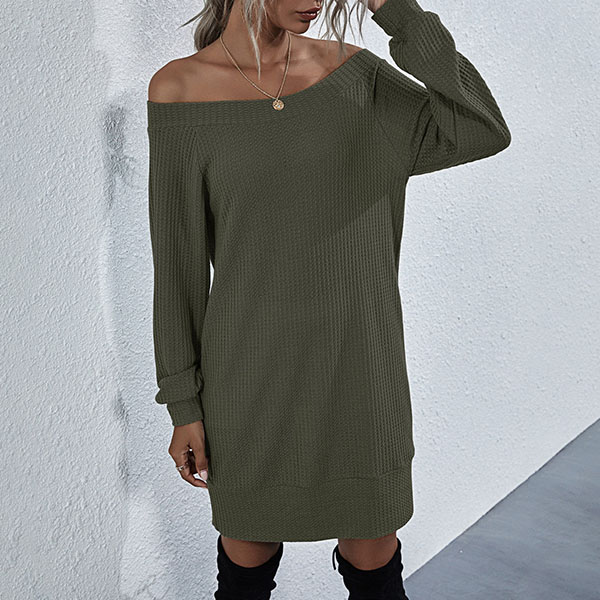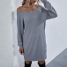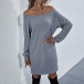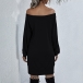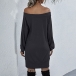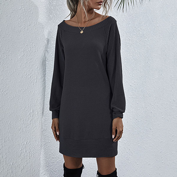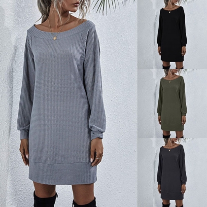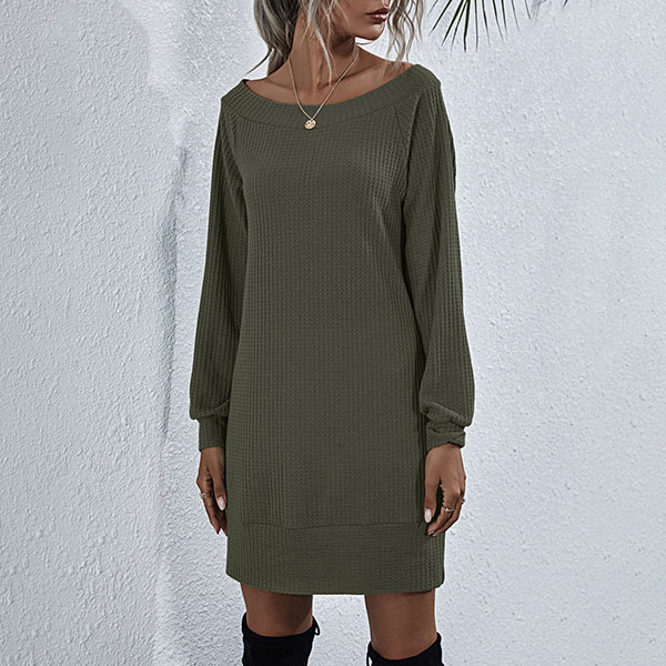 Fashion Solid Color Long Sleeve Boat Neck Knit Dress