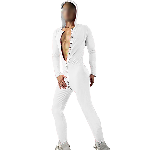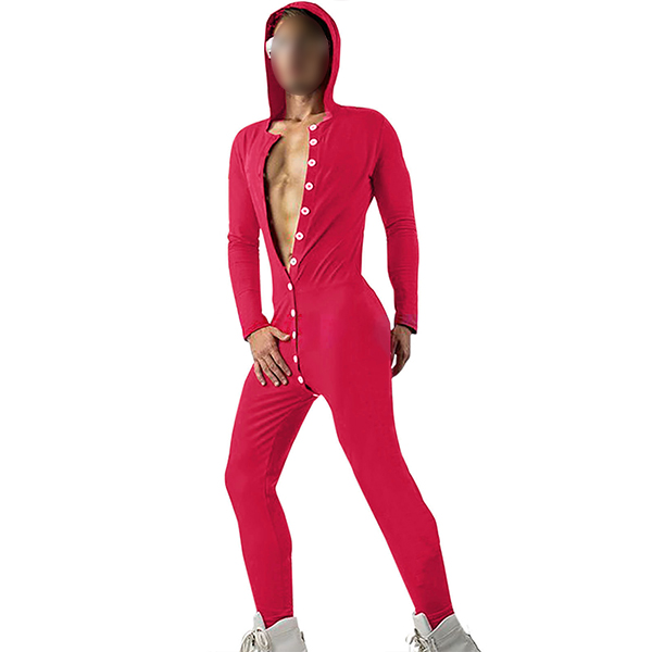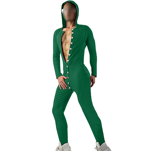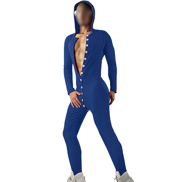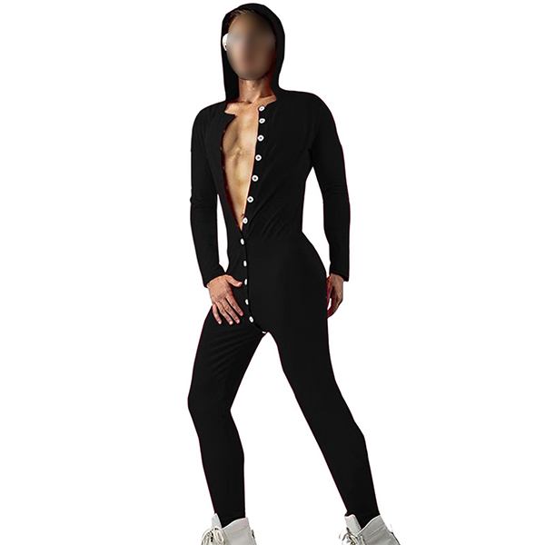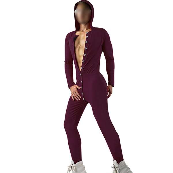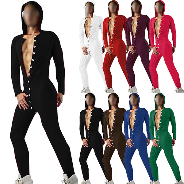 Fashion Solid Color Long Sleeve Buttoned Hoodie Jumpsuit for Men