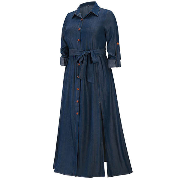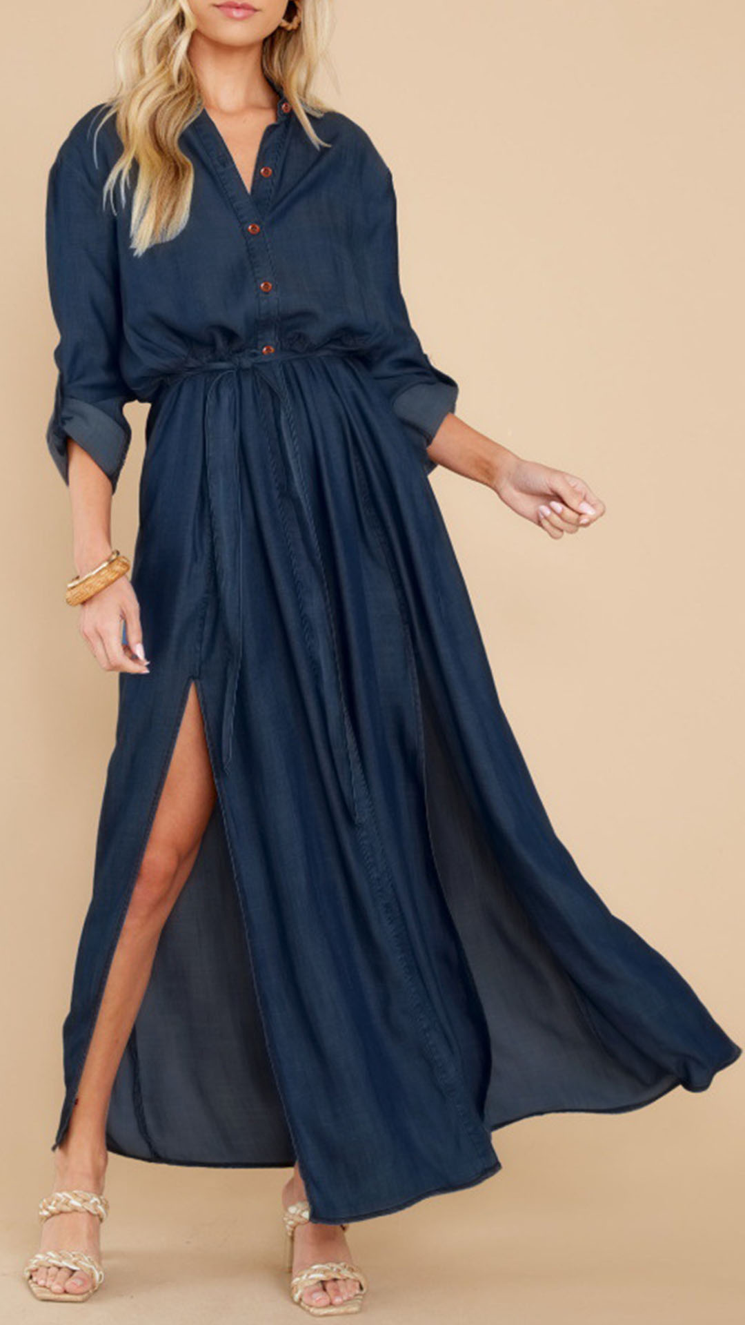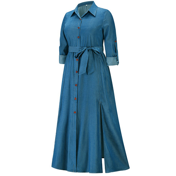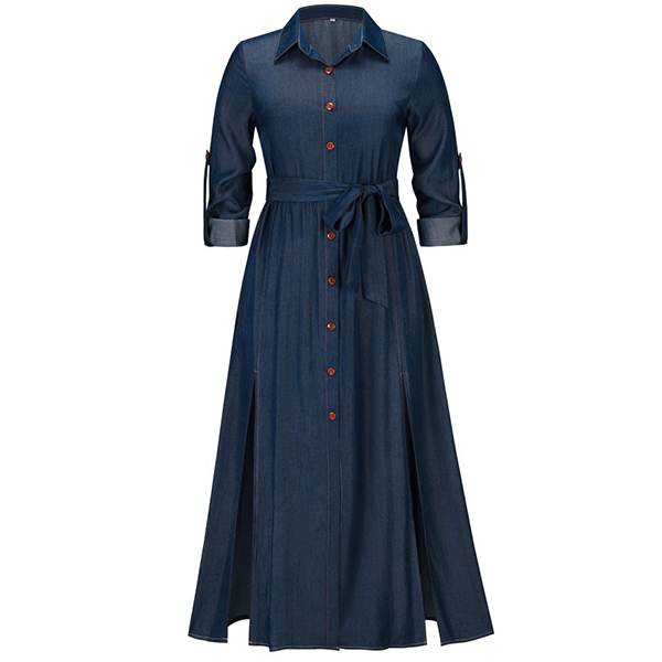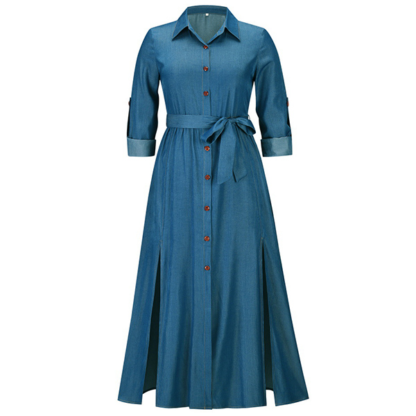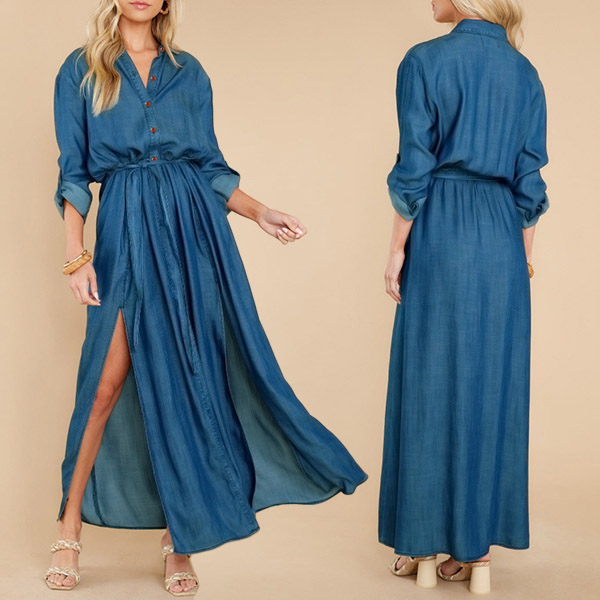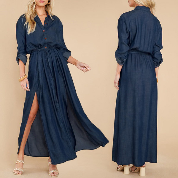 Look at this dress! The V-neck and button front design is both flattering and stylish, while the self-tie ruched waist gives you the perfect fit. The slit skirt adds a touch of sexiness, while the long sleeves keep you warm on cooler days. Wanna have a try?