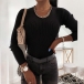 Fashion Solid Color Long Sleeve Chain Round Neck Slim Fit Top