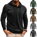 Fashion Solid Color Long Sleeve Chest Pockets Drawstring Hooded Sweatshirt for Men
