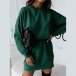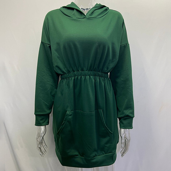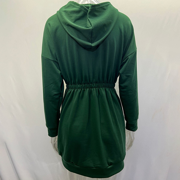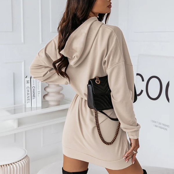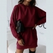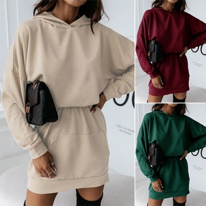 Fashion Solid Color Long Sleeve Cinch Waist Kangaroo Pockets Hooded Sweatshirt Dress