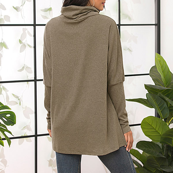 Wanna try a different style t-shirt? Then you can make your eyes focused on this t-shirt! Solid color style,the cowl neck and high-low hem design make this piece look so distinctive and attractive. And the unique sleeve design will further enhance its charm. Like it? Then add it to your wardrobe ensemble!