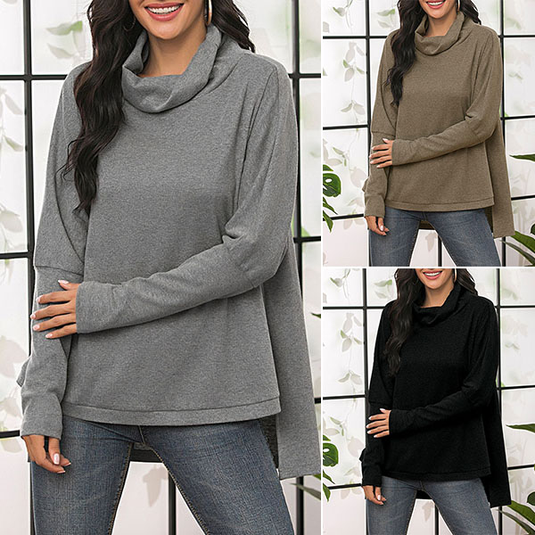 Fashion Solid Color Long Sleeve Cowl Neck High-low Hem T-shirt
