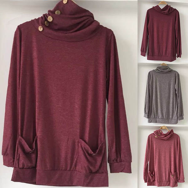 Update your casual wardrobe ensemble with this sweatshirt. Solid color tone design makes it look simple,stylish yet generous,while the cowl neck and button details break the classic and traditional design style. You can simply matching with a jeans to finish a laid-back but fashionable daily look.