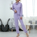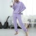 Fashion Solid Color Long Sleeve Cowl Neck Top + Pants Two-piece Set