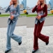 Fashion Solid Color Long Sleeve Crop Top + High Waist Pants Two-piece Set