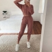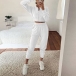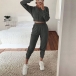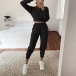 Fashion Solid Color Long Sleeve Crop Top + Pants Two-piece Set