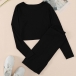 Fashion Solid Color Long Sleeve Crop Top + Pants Two-piece Set