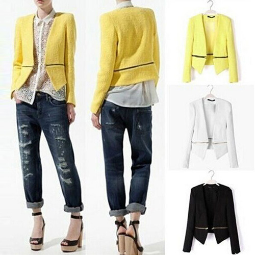 Have you ever seen such chic and unique blazer? With zipper design,which can make the blazer detachable.