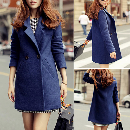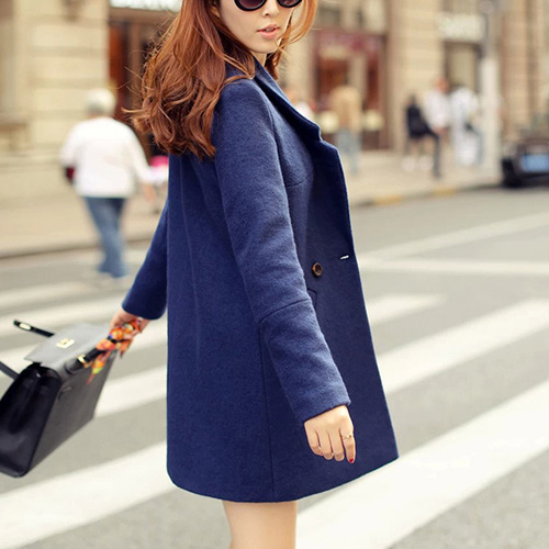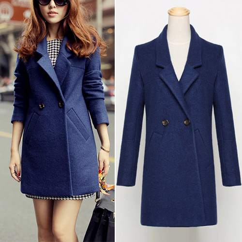 This woolen coat features solid color style,look gorgeous and elegant. Long sleeve,double-breasted
