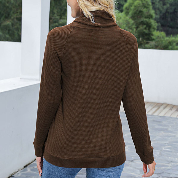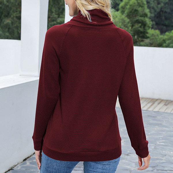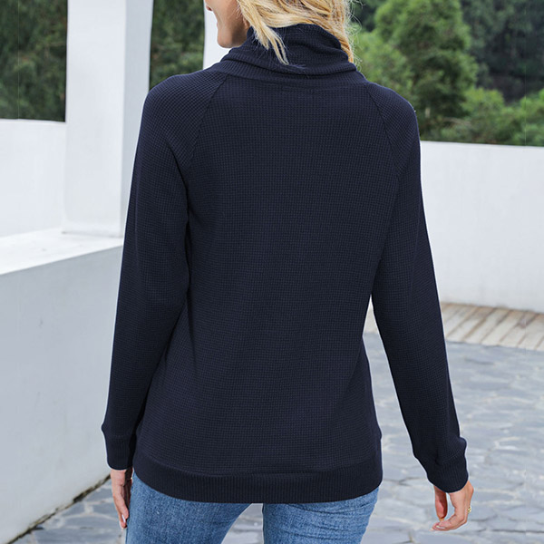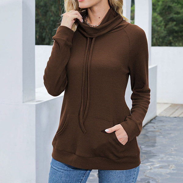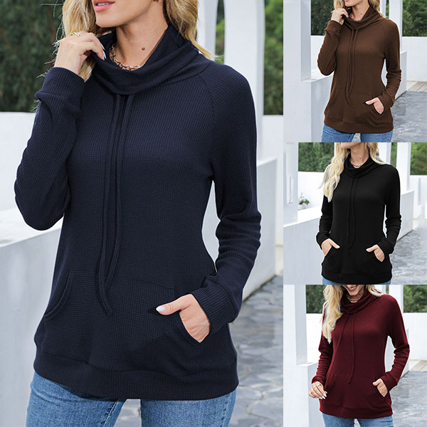As for a laid-back yet fashionable autumn look,you can just have a try this sweatshirt. Solid color style,the cowl neck with drawstring design breaks the simple and dull design style,while the front-pocket design will lend you some casual vibes. You can just match with your favourite jeans to start your wonderful day.