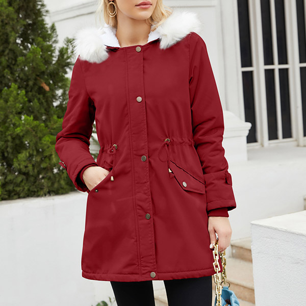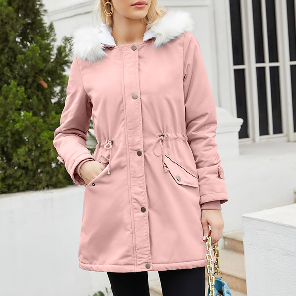 A coat for this winter! The drawstring waist offers a flattering silhouette, while the hood adds an extra layer of coziness and protection against the chill. Its solid color design adds a versatile touch, making it an excellent match for a variety of outfits. Whether you're heading to a casual lunch or a night out in the city, this jacket promises to keep you looking chic and feeling warm. Pair it with your favorite boots and denim for a complete, fashion-forward look.