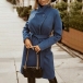 Fashion Solid Color Long Sleeve Duffle Coat with Waist Strap