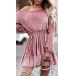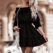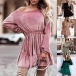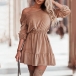 Fashion Solid Color Long Sleeve Elasitc Waistline Ruffle Hemline Dress