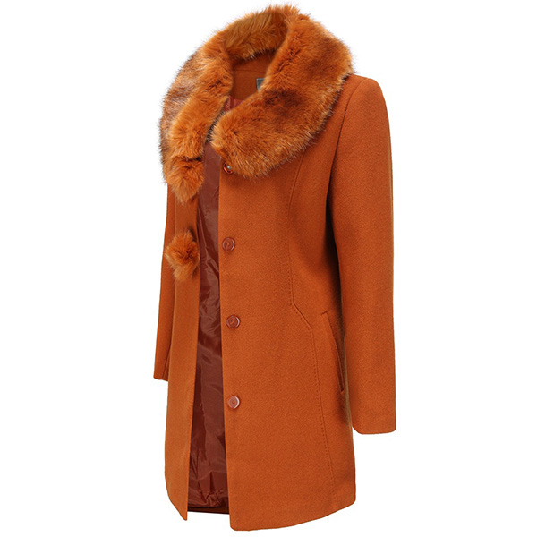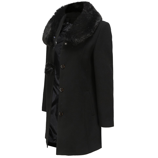 Fashion Solid Color Long Sleeve Faux Fur Collar Slim it Woolen Coat