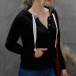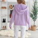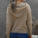 Fashion Solid Color Long Sleeve Front-button Lace Drawstring Hooded Knit Top
